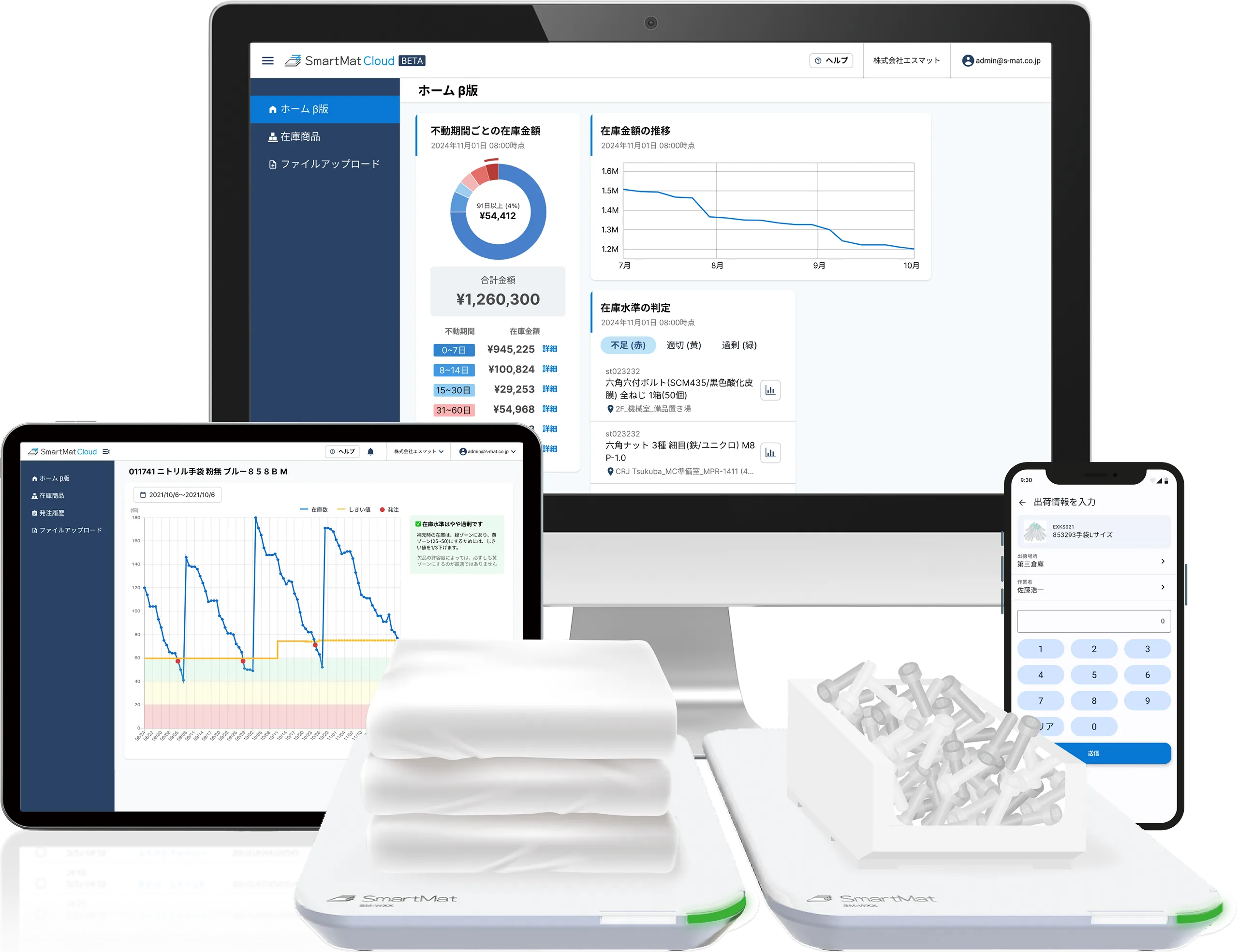 - 変動の大きい在庫や高額品は、スマートマットクラウドで自動測定